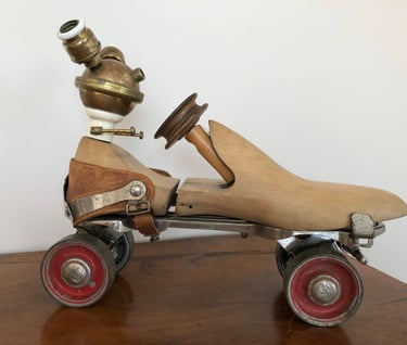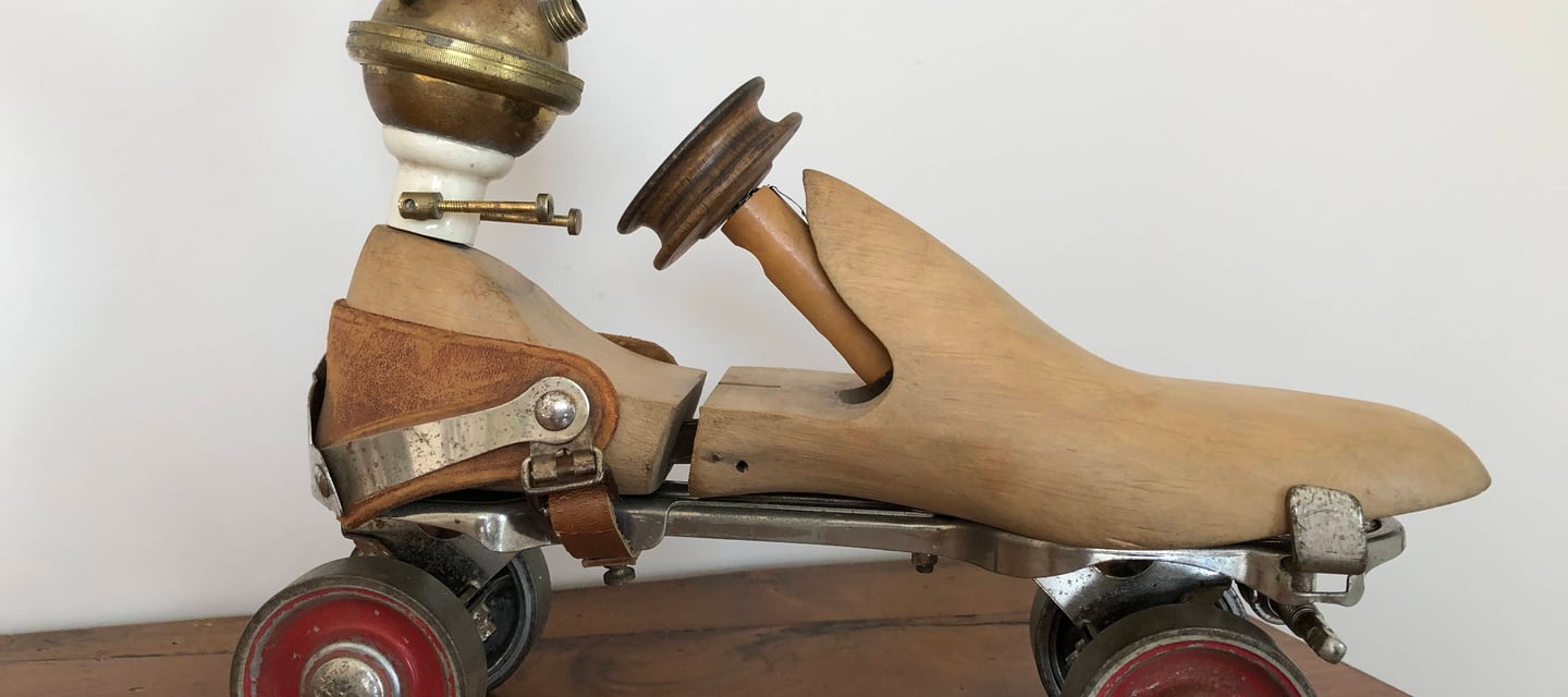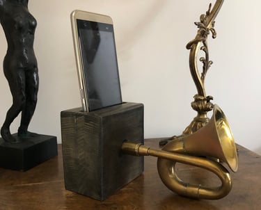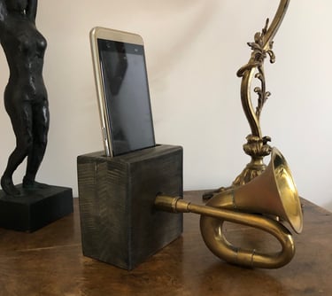 Les objets. Je pars de l’objet que j’ai entre les mains : par exemple d’anciens carreaux de ciment que je transforme en dessous de plat. Ou encore un ancien Klaxon à poire de voiture qui devient un amplificateur de son passif pour smartphone ; pas besoin de le recharger, ni de le brancher pour qu'il fonctionne !