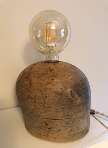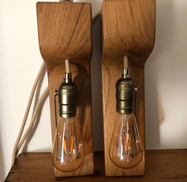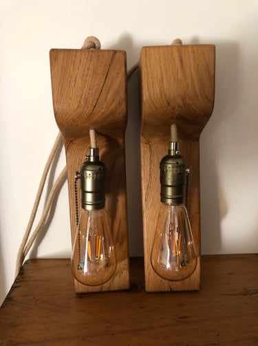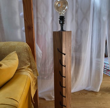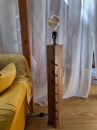 Lampadaire bout de canapé à partir d'un chevron de noyer pressoir